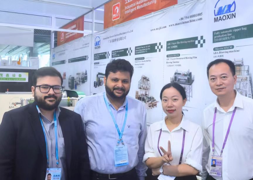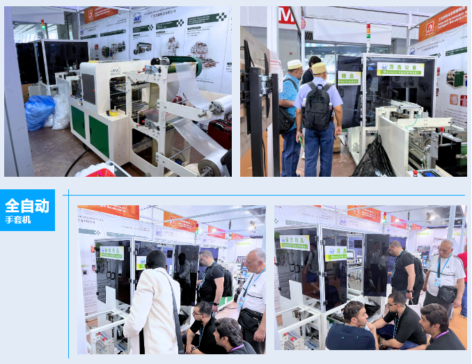 茂鑫本次帶來了全自動一次性手套機,設備從切膜到手套生成到包裝,一氣呵成